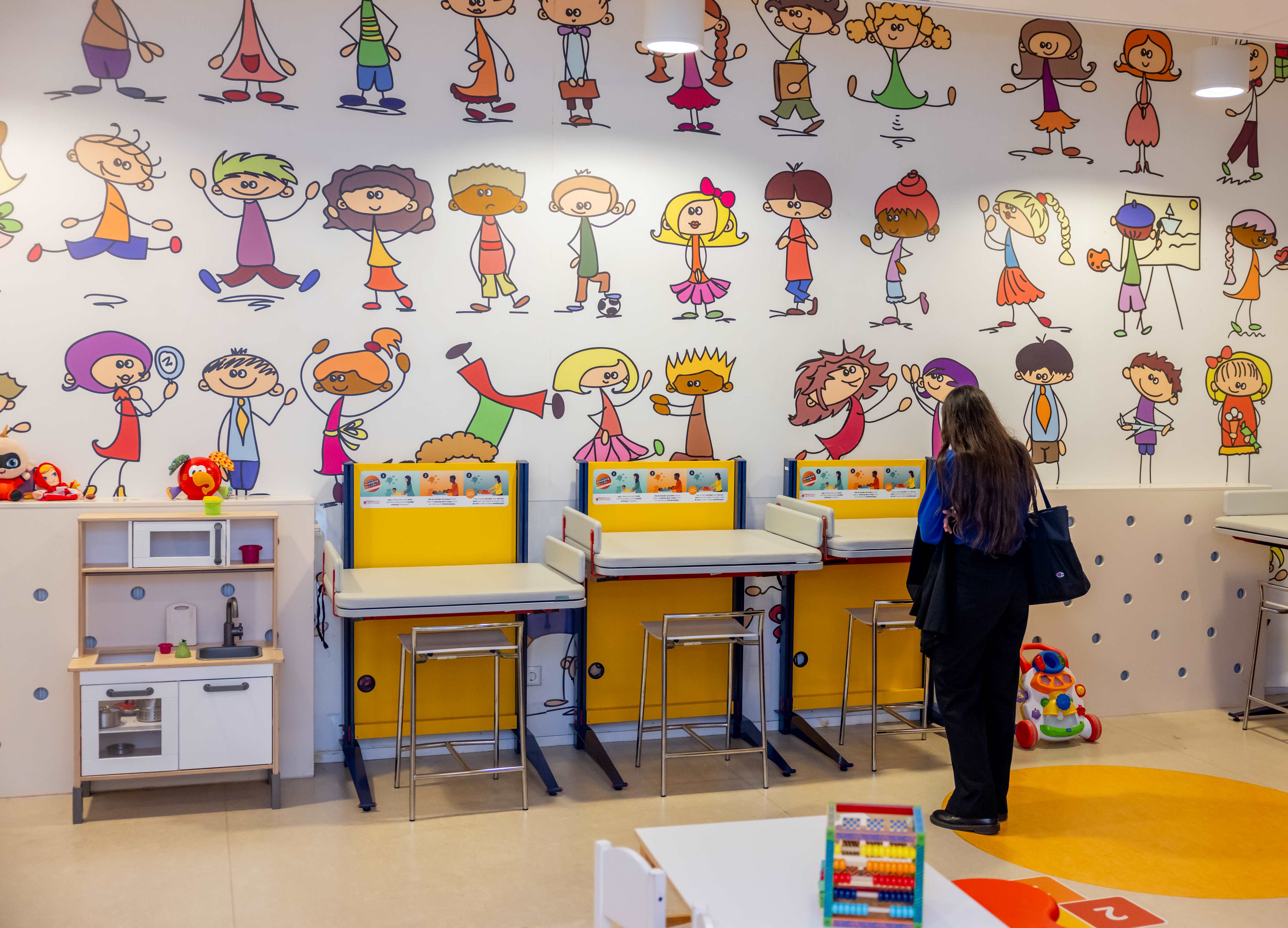 A participant discovering the facilities of a local Centre for Youth and Family during the onsite visit of the mobile units in Amsterdam. -